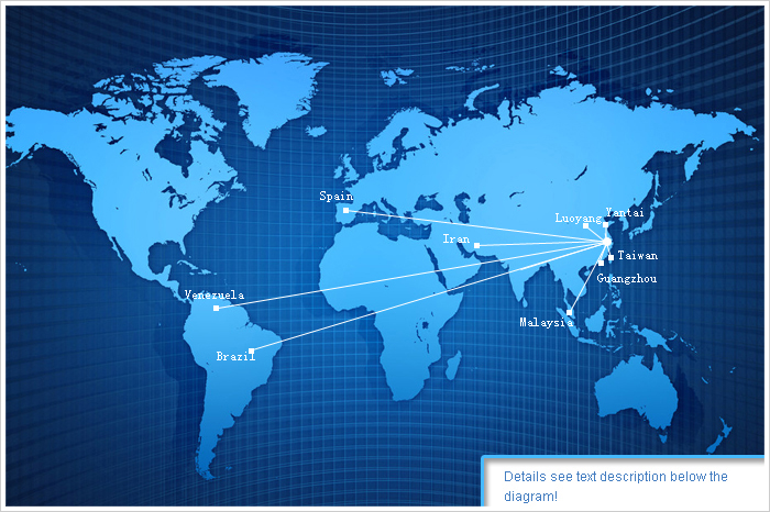 China:Guangdong, Wenzhou, Ningbo, Yongkang, Lishui, Pujiang, Yiwu, Wuxi, Suzhou, Changzhou, Luoyang, Henan, Shandong Yantai Taiwan