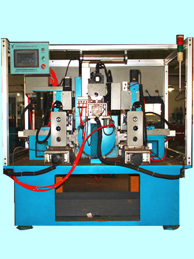 该设备由PLC控制、伺服电机、步进电机和气动元件为执行元件的锁具加工设备,具有高效、高精度、低故障等优点。加工对象为铜质葫芦锁体,以铜棒型材为原料,一次性完成锁壳加工,包括切中槽、钻大孔、钻台阶孔、中孔钻孔攻丝、内倒角。